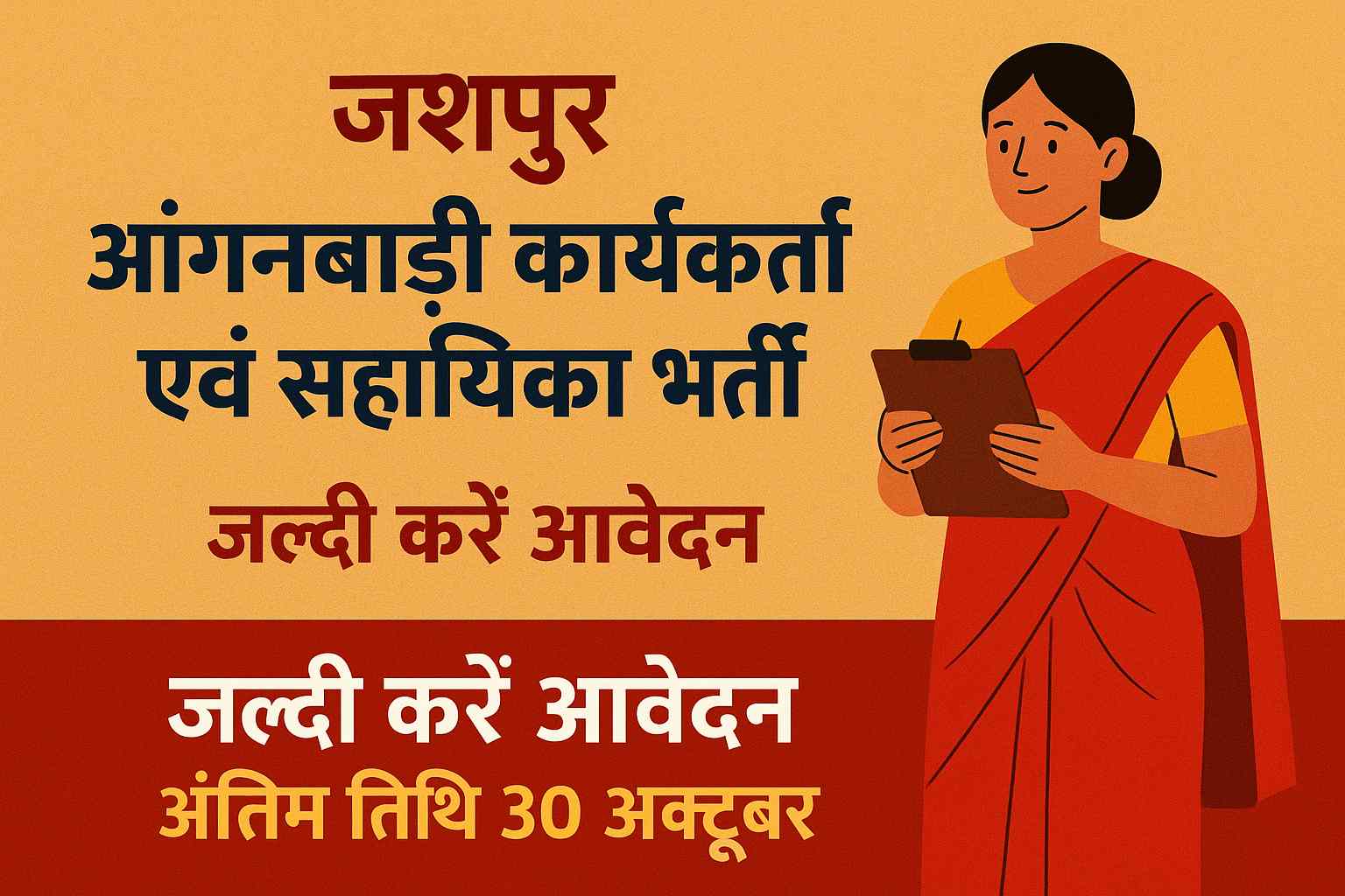 जशपुर आंगनबाड़ी कार्यकर्ता एवं सहायिका भर्ती, जल्दी करें आवेदन अंतिम तिथि 30 अक्टूबर